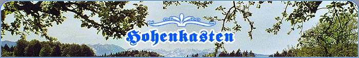 Hohenkasten HistorieHohenkasten heißt, so ist es überliefert, seit dem Jahre 1612 so. Damals hieß es genauer "Hoher Kasten". Erhardsberg war der erste Name des Hofes, der an diesem einzigartigen Platz stand. Dieser war auch in die Gebietskarte von Apian eingetragen. Die Gründung von Erhardsberg geht auf das Jahr 1445 zurück. Die Höfe waren mit einem Zehntel ihrer Ernte abgabepflichtig, und Erhardsberg gab damals an das Kloster Ettal ab. Von 1471 an musste Erhardsberg an das nähergelegene Kloster Benediktbeuern abgeben. Als Einkehr besteht Hohenkasten seit Ende des 15. Jahrhunderts. Damals waren die Voraussetzungen für die Einrichtung einer Einkehr erfüllt: Lage an einer wichtigen Verbindungsstraße, nämlich derjenigen zwischen Weilheim und Tölz, Wasser laufend oder aus dem Ziehbrunnen, Unterstell-, Fütterungs- und Übernachtungsmöglichkeit für Pferde und Verpflegungs- und Übernachtungsmöglichkeit für Reisende. |